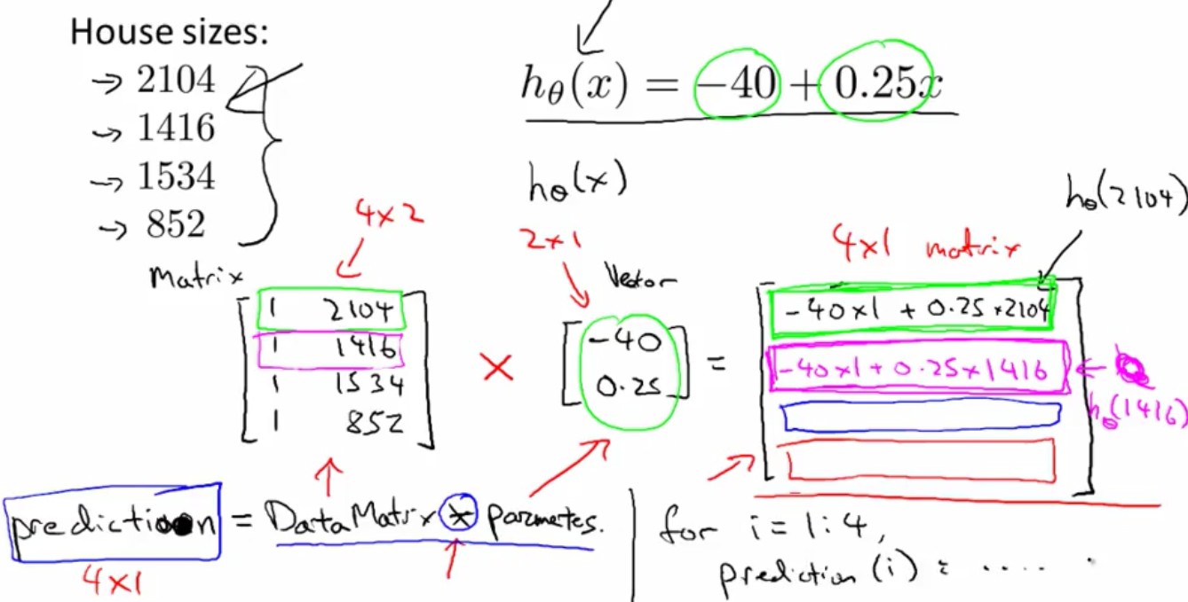 有四间房子的大小分别为:2104,1416,1534,852。其拟合函数h(x)=-40+0.25*x;