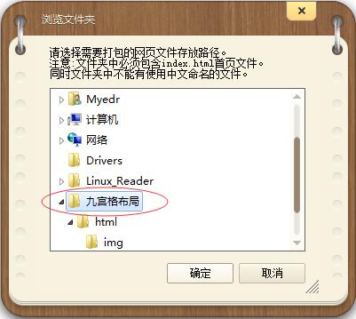 3、将index.html和用到的图片放到一个文件夹下面,然后点击浏览选择打包这个文件夹。